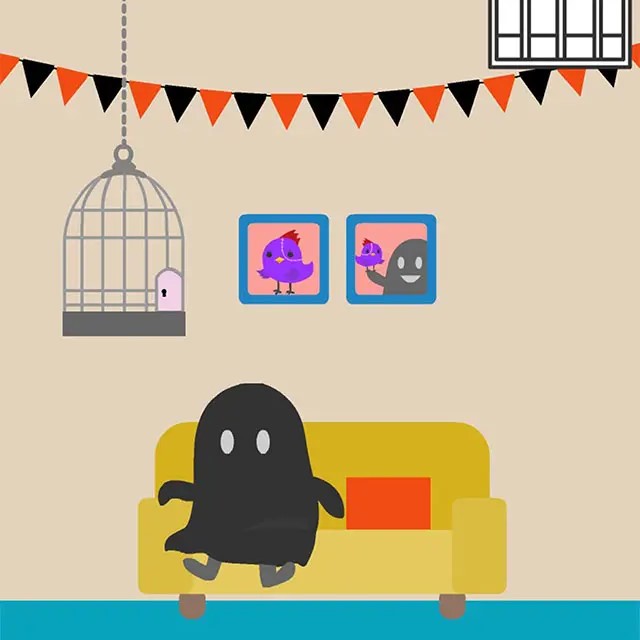 The house of a black ghost was properly decorated for Halloween and waiting for the children to come get candy and sweets. However, before the children arrived, dwarfs appeared from nowhere and invaded his house. Frustrating. To get rid of them, there is no other way than to kick them out. Your challenge is to help the homeowner locate these mischievous creatures and put them in cages for transport into the forest.