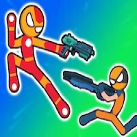 Battle with two stickmen in Stick Duel: Battle Hero. You need to control superheroes to fight opponents and score five points before the opponent is the winner.